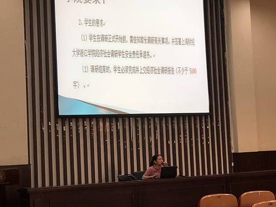 在开展经济调研之前,为了更好的了解调研报告内容以及注意事项,我系于2019年6月14日在28幢120开展有关2019年度暑期经济调研的报告书写分享会,会议邀请工商管理系毛云飞老师担任主讲人。会议中毛云飞老师结合以往暑期经济调研报告案例,向同学们提供了宝贵的经验以及方法。随后,毛云飞老师就暑期经济调研报告书写作出细心指导与建议,鼓励同学们创新,开阔思维。会议在热烈的掌声中落下帷幕。