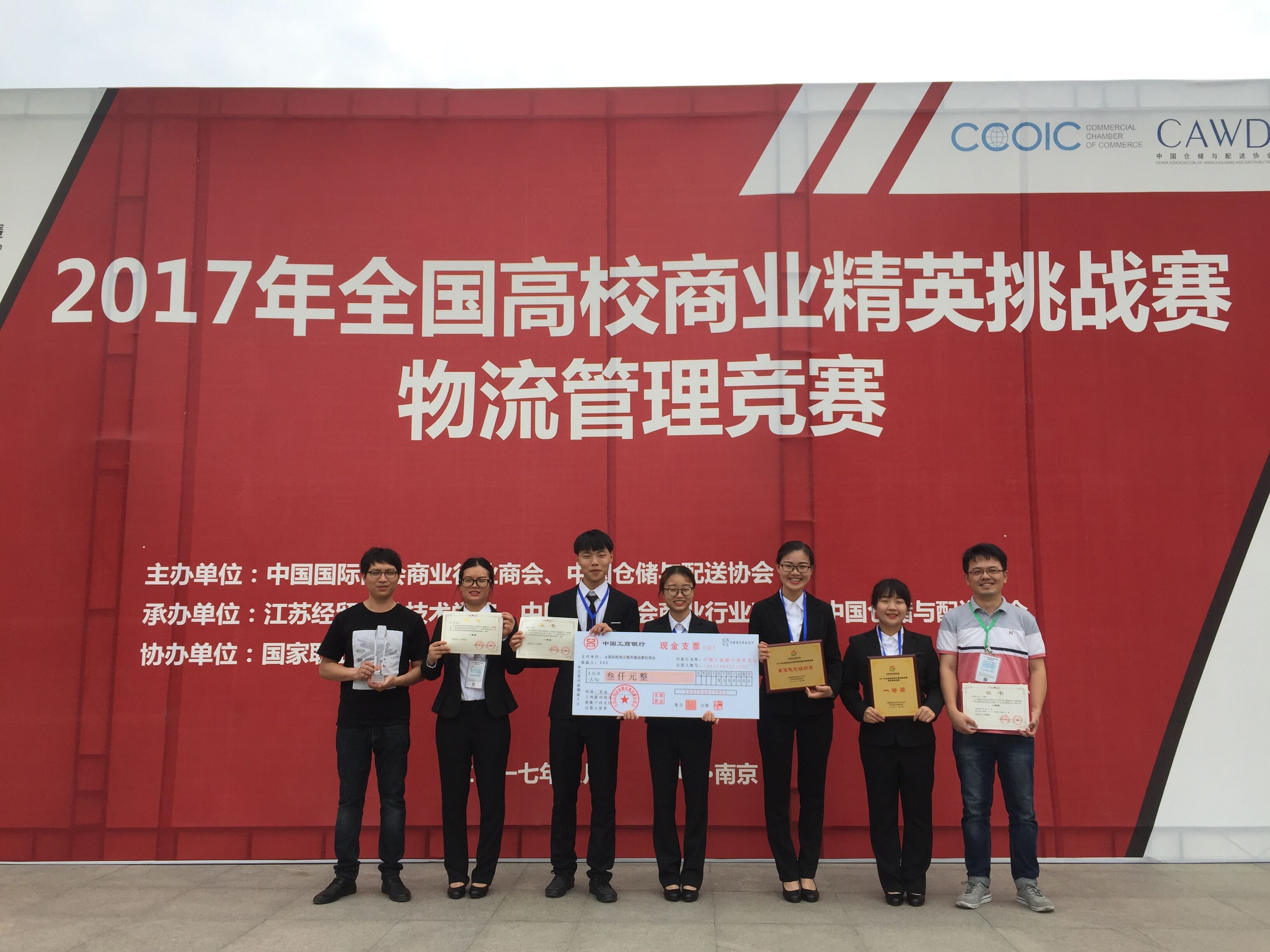 2017年全国高校商业精英挑战赛物流管理竞赛于6月2日至6月4日在江苏南京顺利举行。我院派出的三支参赛队伍在比赛中表现出色,一支队伍取得全国总冠军并入围2017年海峡两岸大学生物流管理竞赛总决赛,其余两支队伍获得二等奖。6名指导教师获得“优秀指导教师奖”,我院获得“最佳院校组织奖”。