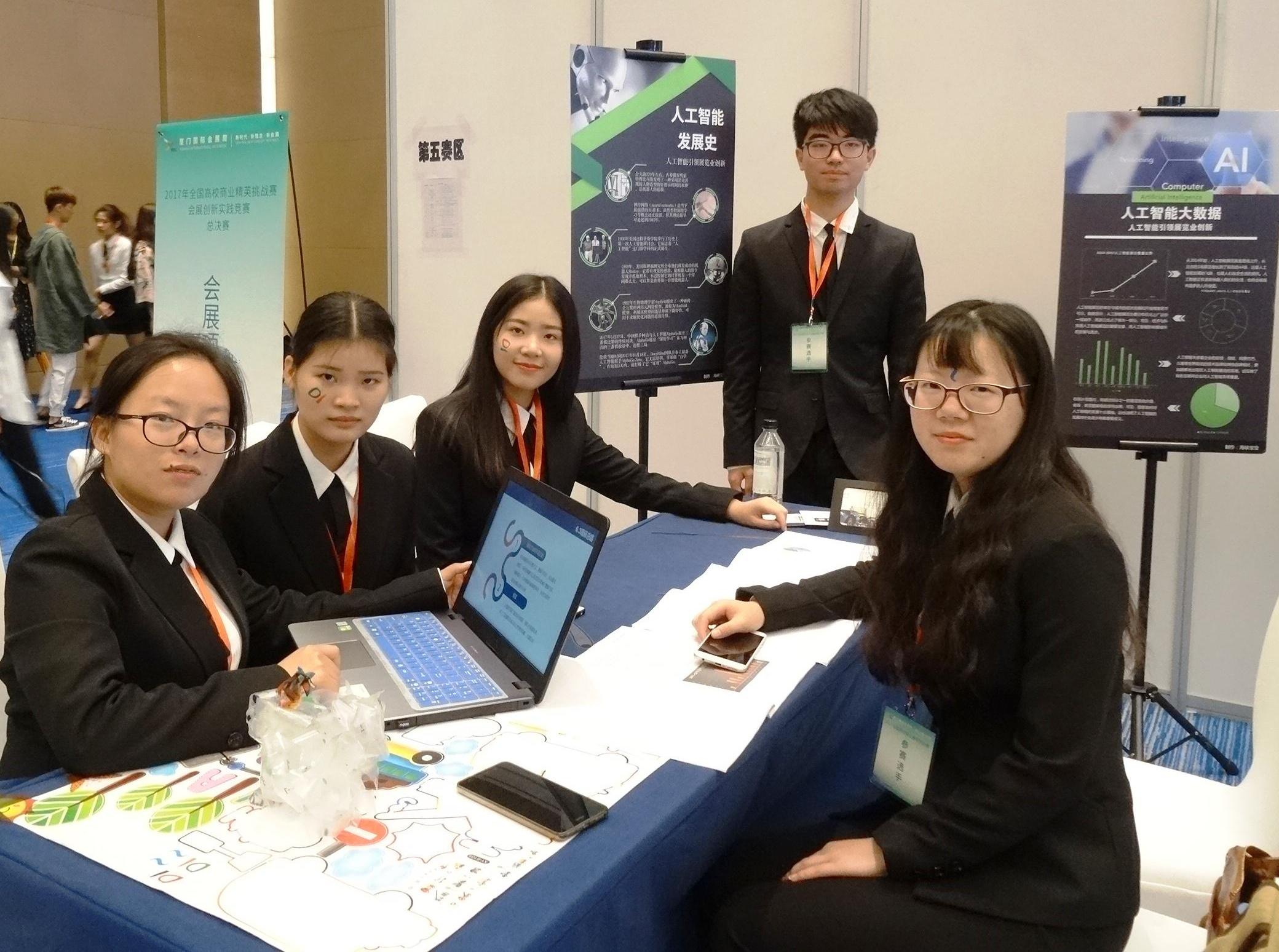 在深夜十二点,三个普普通通的寝室里,五位宝宝都在敲打键盘。竞赛前两周,熬夜,对她们来说已是常态,睡觉是奢望,因为摆在她们面前的是大量数据需要处理,收集数据,筛选数据,分析数据等等,脑洞大开才有思路,才有发现,竞赛文本要不断地完善完善……,痛苦的是,在决赛前几天,组委会突然说,增加一个展洽环节。简直是添乱。这意味着要在短时间内还要学习大量的展洽专业知识,为了节省经费,五号宝宝池卓乐利用原先的美术基础,自己动手设计、制作。宝宝们高度默契,心有灵犀,数据分析、文本分析、ppt美化、展示设计,夜色阑珊中畅游在数据的海洋,美图的世界,去寻找、去发现……期间,有两位宝宝还比赛谁能干到通宵,这是不要命的节奏啊?结果到了凌晨四点,两人都受不了,虽然倒在黎明前最黑暗的时刻,也是另一种可喜可贺。