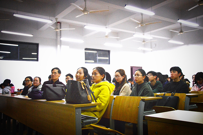 接着,池水明副院长介绍了创业学院。介绍了我校对于创业的政策转变,由之前只是辅导参加创业比赛的同学转变为去帮助每一个哪怕只是想要了解关于创业的学生。对于有创业想法的同学提供了创业空间。池院长说明了我校开办青创园的目的在于能够给所有前来咨询的同学有所帮助,对于那些有想法的同学提供一个好的实践平台,能够让大家在创业的实践中,去有效的培养自主学习、团队合作、吃苦上进的意识,从而为步入社会后的求职工作、个人发展奠定基础、创造良机。同时池院长还分析了创新创业的好处,这第一个就是当老板,能够创富,第二个是更加重要的,创业这个过程对于整个人生的过程,培养了创新意识和能力,这些都是非常宝贵的经验。池院长的精彩发言,得到了同学们热情掌声的认同。