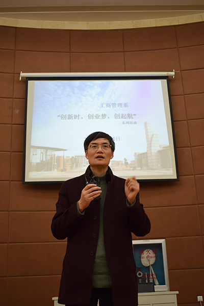 讲座开始前,李玫昌副主任对工商系第一届创新创业系列活动进行了讲解,详细讲解了几个“创”字,分别是“创意”,“创新”,“创业”和“创富”。并鼓励在座的学生积极参与创新创业活动中去。