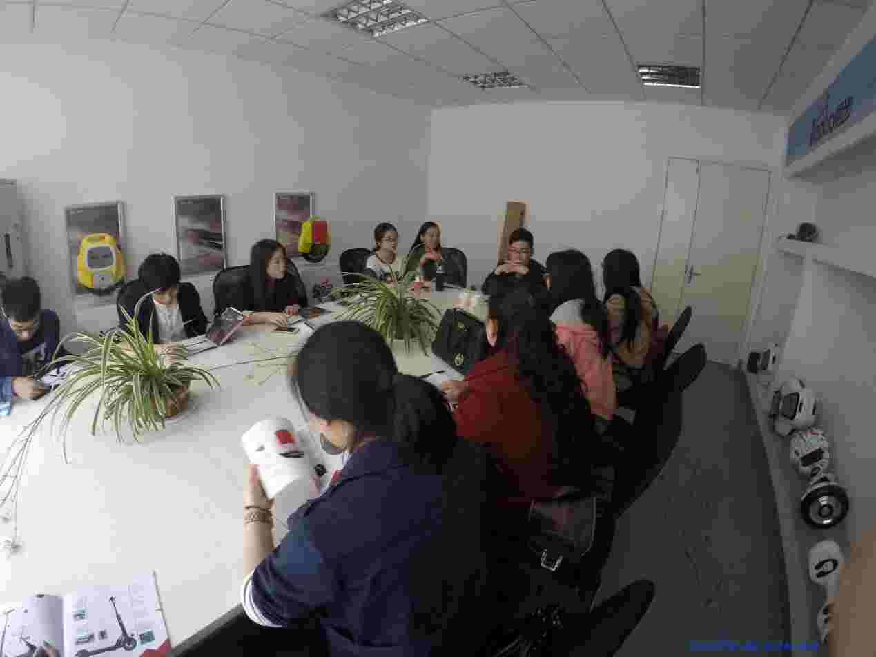 到达企业后,师生们先在业务专员的热情接待下参观了产品的组装车间,初步了解了产品的组装作业。之后,周经理就公司发展主旨、产品特征性能、产品展示和外贸业务拓展等方面进行了细致的介绍和讲解,双方也就许多细节问题进行了深入交流。通过交流,师生们更好的了解了公司的主推产品以及其销售,并且企业方面也给予了一些在比赛方面的切实可用的信息。