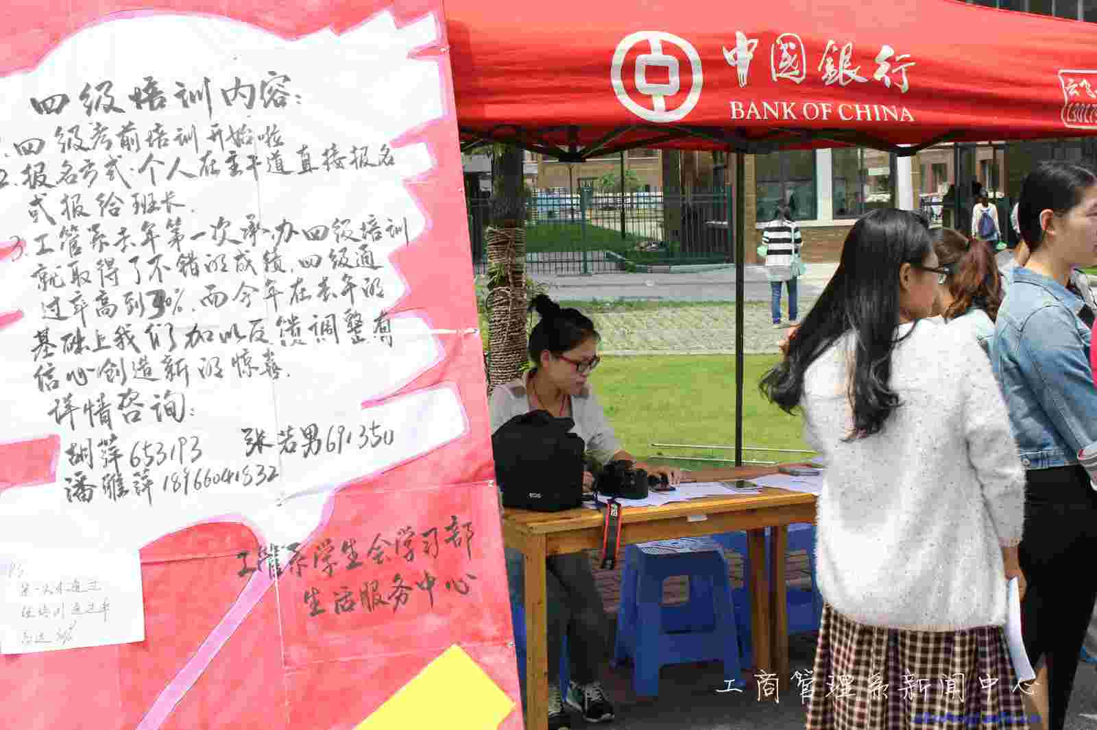 2014年4月28日中午12时,工商管理系学习部在7幢教学楼主干道进行了“大学英语四级培训”招生报名。同年5月5日到6月5日期间,上海财经大学浙江学院工商管理系学习部将开展四级考试培训,使工管系同学进行更有针对性的复习,提高学习英语的积极性,从而提高同学们整体的英语水平。