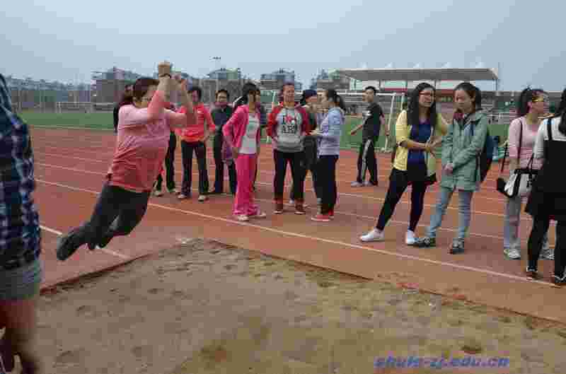 在系领导的带领下,我系认真做好宣传和组织报名工作。老师和学生们积极参加各个项目。其中学生组136人,教工组17人。经过两天的角逐,我系运动健儿努力拼搏,在赛场上留下了飒爽英姿。通过大家的努力,我系学生组代表队获得了团体总分第一名的优异成绩,教工组代表队取得了团体总分第六名,并获得“优秀组织奖”荣誉称号。特别是教工组,今年在注入了新鲜血液之后,老师们在田径场上大显身手,成绩较去年显著提高。在一分钟单人跳绳项目中,吴小渊老师神一般地跳了180多下,斩获第一;在4kg跳球比赛中,张芳方老师、吴小渊老师分别获得了第二名和第三名;在二分钟集体跳绳项目中,老师们团结合作,分工协作,摔绳节奏均匀,跳绳的步伐矫健、速度快,最后获得了第二名。当然,在其他的比赛项目中,老师们也取得了不错的成绩,为团队作出了贡献。