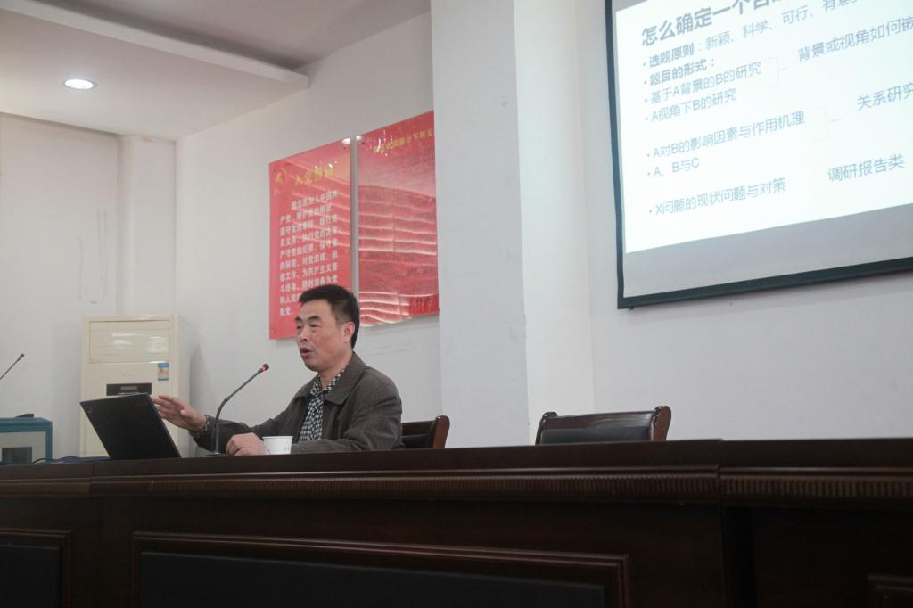 11月14日中午,浙江师范大学朱华友教授莅临我校工商管理系开展了有关于学术论文撰写的指导讲座。工商管理系副主任姜艳艳、各教研室教师出席聆听了本次讲座。