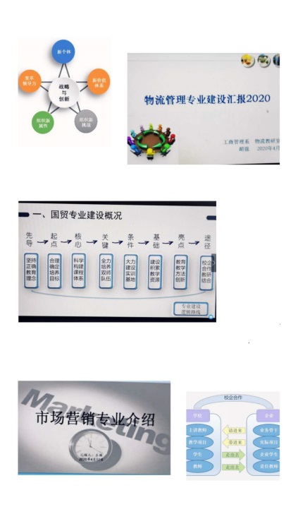 会议初始,系部各专业负责人介绍了各自专业的相关情况。第一位是刘丽君老师,她介绍到人力资源管理专业建立了合理化的组织体系,拥有双师型教师队伍,在培养模式方面加强与行业企业的外联,加深与实践教学基地的合作。同时专业建设也存在一些问题,专业招生数量减少,专业特色不突出,教学和科研能力有待进一步提升。第二位是商军老师,他提到会展经济与管理涵盖较多的校内外社会实践,学生也都积极参加校外专业志愿活动和各类学科比赛。但作为国内新兴专业,该专业的培养模式还不成熟,因此他建议加强专业建设理论课程合理设置,强化实践教学环节,尝试小范围试点新的培养模式。第三位是曾鸣晔老师,她介绍到经近十年的专业建设与发展,工商管理专业的框架初步建立,培养方案逐步完善,师资队伍初具规模,教学条件和教学改革得到完善和推进。另外面对教学团队合作需进一步深入等不足之处,她提出了战略与创新的专业建设建议,形成新价值体系,组织新属性和新挑战。第四位是吕蔚起老师,她提到创业管理专业实行三位一体招生,以创业类比赛为依托的课程设计,构建以赛促改的教学管理体系;以创业类比赛的指导教师为依托,构建比赛指导工作室。第五位是叶文洁老师,她介绍了国际经济与贸易专业的专业建设逻辑路线,合理确定培养目标,大力建设实训基地,建设积累教学资源,在互联网+的新形势下构建课程体系,创新教学时空、师生角色和教育途径,实现校企合作多样化。第六位是张芳方老师,她介绍了国际商务从2015级开始成为一门独立的专业,该专业致力于提升学生的六大能力,创建国际化专职队伍,稳步推进实践教学,以赛促教、以赛促研。第七位是王颖老师,她介绍了市场营销的专业特色为国际背景的师资力量,全面的课程规划,国际化的办学模式;专业发展规划为签订教学实践基地,完成国际化办学项目,科研和教学工作双向发展。第八位是物流管理专业负责人胡强老师,他介绍了物流管理的专业特点为“复合+国际物流”,形成国际物流+国内第三方物流+企业物流+快递物流的复合模式,在后期的专业建设中继续凝练特色,加强校外实践基地建设,提高科研水平,促进教学水平提升。