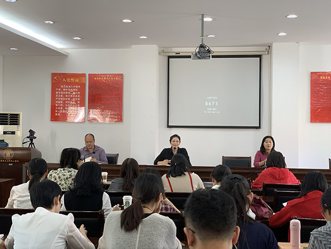 接下来李玫昌老师对我系上半年的各项工作以及取得的各项成绩进行了总结与评价。她指出当前工商系已成为全院第一大系,这对我们来说既是机遇又是挑战,她结合工商系实际情况对标学院“双学双融”对2020下半年的教学工作和科研工作分别进行了部署与安排。为了提升青年教师的科研能力,我系将成立科研提升训练营,采用线上线下相结合的方式对系部教师进行科研培训,希望全体教师群策群力,荣辱与共,为工商系的发展做出贡献!