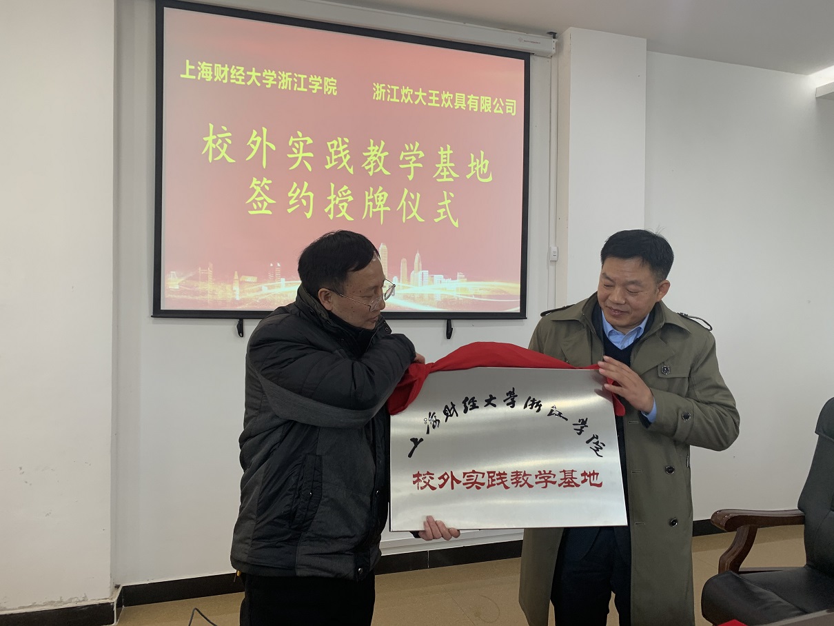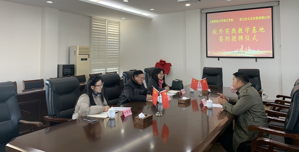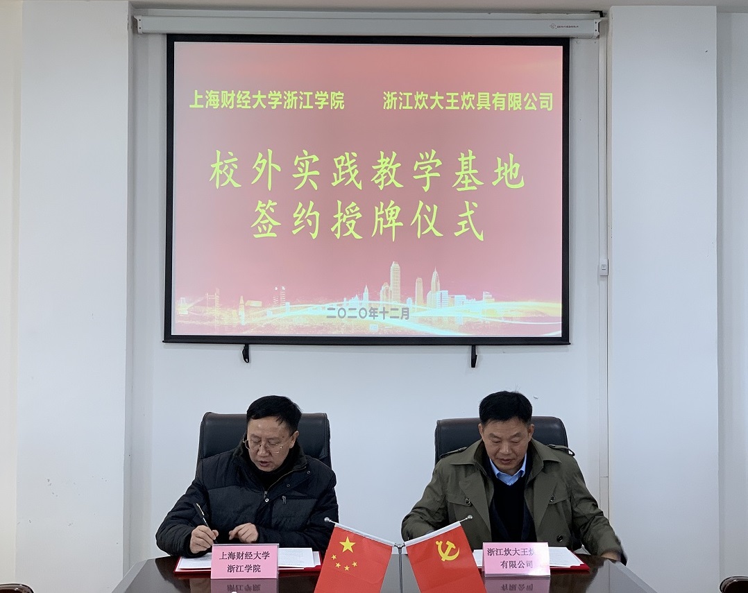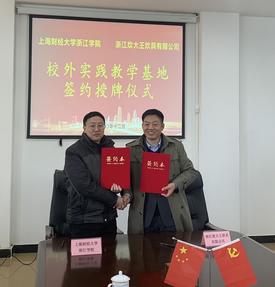 12月31日,学院工商系与浙江炊大王炊具有限公司签约校外实践教学基地。浙江炊大王炊具有限公司管理中心副总经理丁海林、我院副院长邱风、工商系副主任姜艳艳及工商系综合秘书方思懿参加了签约仪式。