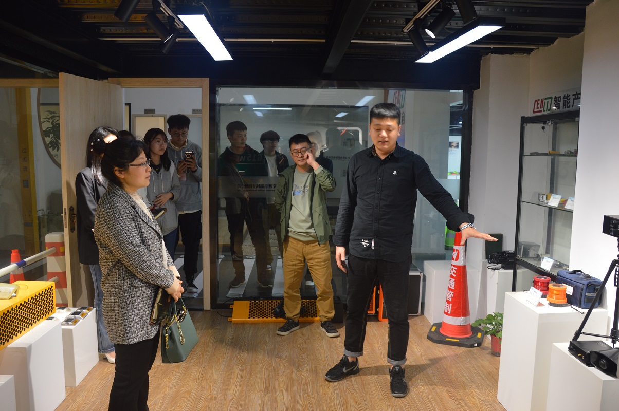 方梨琼对公司的企业文化、主要产品、发展前景进行了详细介绍,交流之余,产品研发部经理赵桂鑫带领师生队伍参观了公司研发的新产品,向调研团队展示了多功能智能安全帽,让调研师生大开眼界。金总对学院人才培养工作和毕业生的工作表现给予了充分肯定,他表示学院毕业生能吃苦耐劳,综合素质强,成长进步快,学院毕业生在去年的新员工入职培训中表现优异,受到了嘉奖,已晋升为部门经理。学院毕业生方梨琼和赵桂鑫分别介绍了他们在公司学习、生活和工作的情况,同时也对母校在校园招聘、学生实践实习、动手能力的培养等方面提出了意见和建议。