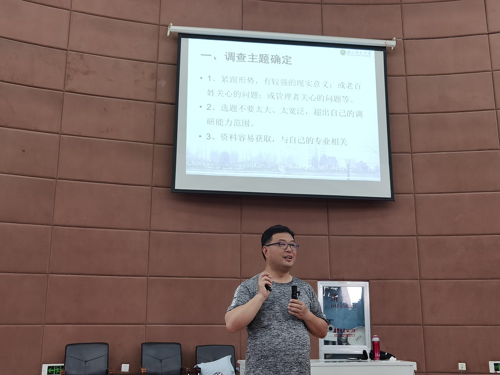 然后,浙江师范大学经济与管理学院的葛深渭教授进行了主题为“经济社会调查若干问题”的讲话,葛教授先介绍了经济调查的各种问题,然后分别从调查主题确定、调查过程控制、调查报告撰写三个方面展开,葛教授强调“选题不要太大、太宽泛,超出自己的调研能力范围”,他说:“选题大了,内容都不好写”,我们应该选择适当的调查方法与调查的范围和重点,确定进行调查的组织机构及人员分工,至少三个人一组:一个笔录、一个录音拍照(或录像)、一个提问。最后葛教授还细心地给我们分析了调查报告的写作方法与调查的注意事项,调查报告标题一般有两种写法:一是调查事项+文种,二是市场调查单位+事项+文种。