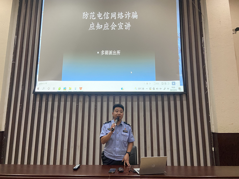 为进一步做好校园防范电信网络诈骗工作,加强新生的反电信网络诈骗教育,有效提高新生的防诈骗意识。9月18日,工商管理系邀请多湖派出所副所长洪路进入校园开展“防范电信网络诈骗应知应会”专题讲座。