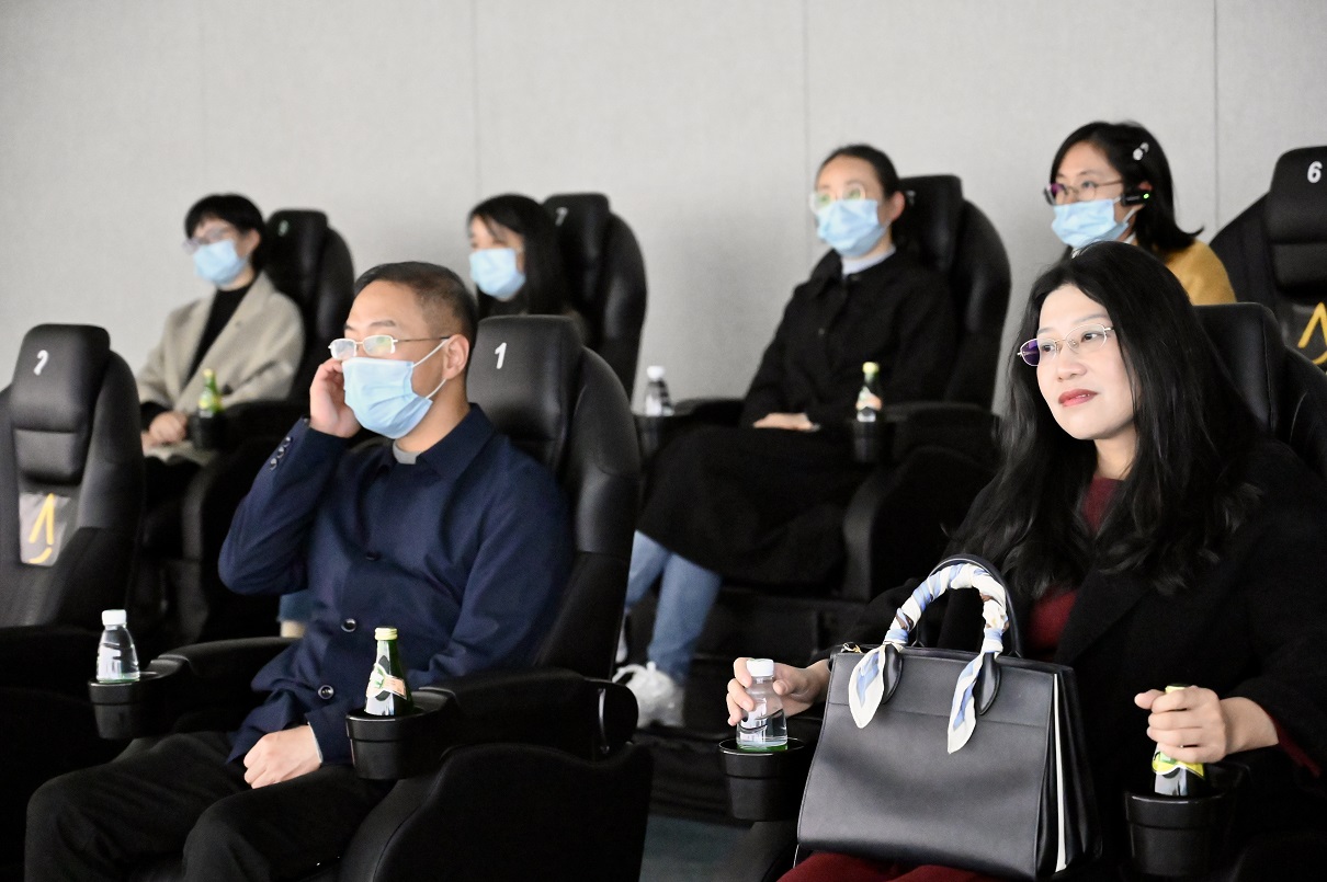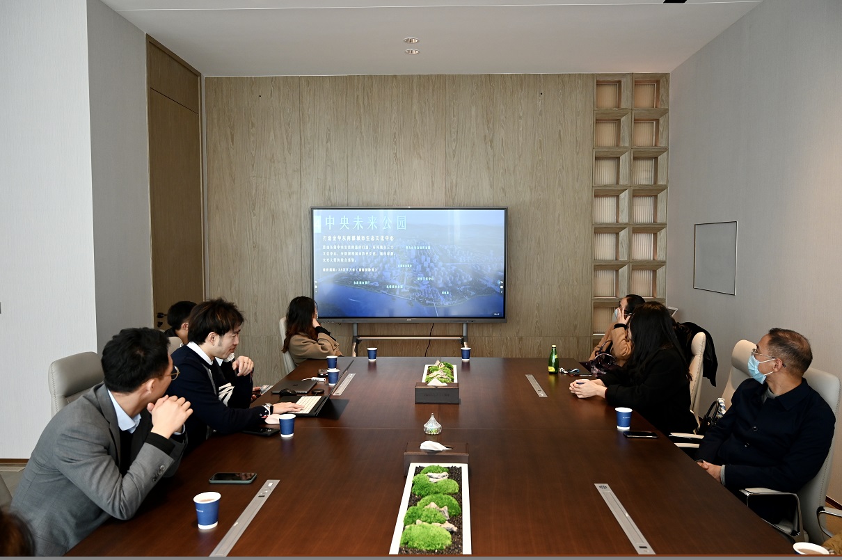 对金茂的发展及文化有了一定了解后,胡总经理带领大家走进观影室,一起欣赏金茂未来社区的未来建设蓝图。一个依托政企结合,高等学府助力,医疗服务保障,城市轻轨便利的金茂未来社区的景象缓缓浮现于众人眼前。