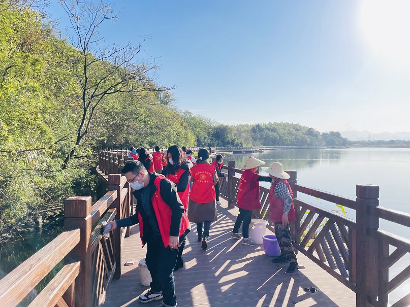 11月25日,上海财经大学浙江学院工商管理系的师生党员们走进婺城区白龙桥镇新昌桥村的沿溪廊桥,开展社区共建志愿服务活动,助力乡村卫生文明。这是工商管理系党总支结合金华市创建文明城市而创新的校地党建共建新模式,推动“我为群众办实事”往深里走、往心里走、往实里走的一次生动实践。