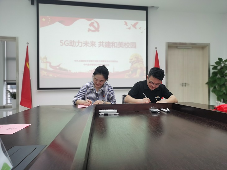 在之后的座谈会环节,金东移动公司张皖莹经理介绍了公司的基本情况以及开展党业融合方面取得的工作成效。学院老师也向对方介绍了本次调研人员以及工商管理系的系部情况和党建工作情况。接下来,双方就未来发展合作方向、人才需求、党建工作的融合等问题进行了深入探讨,并表示后续会更加注重在党建、志愿者、学生就业等方面的合作,争取双方相互促进,互利共赢。最后,双方签订“党建和创”合作书并合影留念。