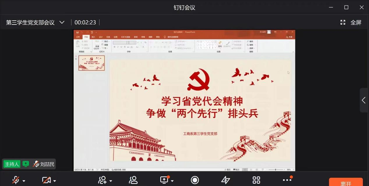 历史在继往开来中续写,学业在接续奋斗中升华。省第十五次党代会召开后,浙江上下迅速掀起学习宣传贯彻新热潮。为进一步学习贯彻省第十五次党代会精神,工商管理系第三学生党支部于7月11日19时以线上会议的方式开展主题党日活动,会议由工商管理系第三学生党支部书记于晓丹同志主持。会议应到党员97人,实到97人。