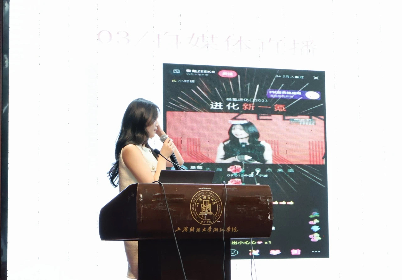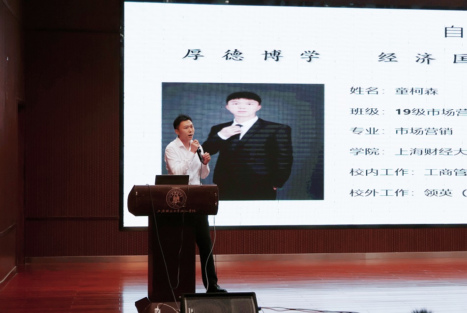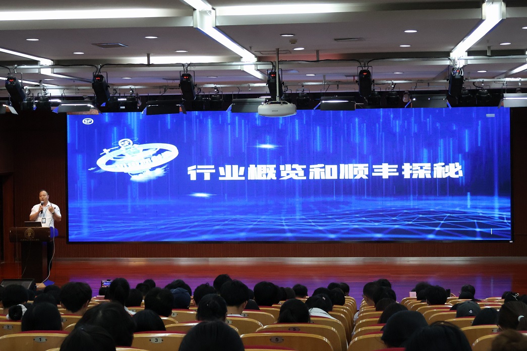 优秀企业家代表——金华金丰速运有限公司党支部书记、公共关系部总监代宪涛先生以顺丰为例,为同学们讲解了行业概况。优秀校友代表——赖逸电子商务有限公司童柯森学长为同学们分享了他的大学经历与创业心得,介绍了市场营销专业对他的影响。