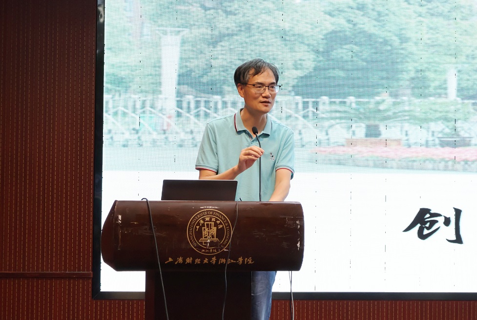 会议伊始,工商管理系副主任李玫昌老师对工商管理系总体情况进行简单的介绍。期间李玫昌老师还提到了对“AI发展是否会冲击工商管理专业”的看法。随后,创业学院院长池水明老师致辞。两位老师对2023级新生及线上的家长们表示了热烈的欢迎,期待同学们在大学四年里的表现。