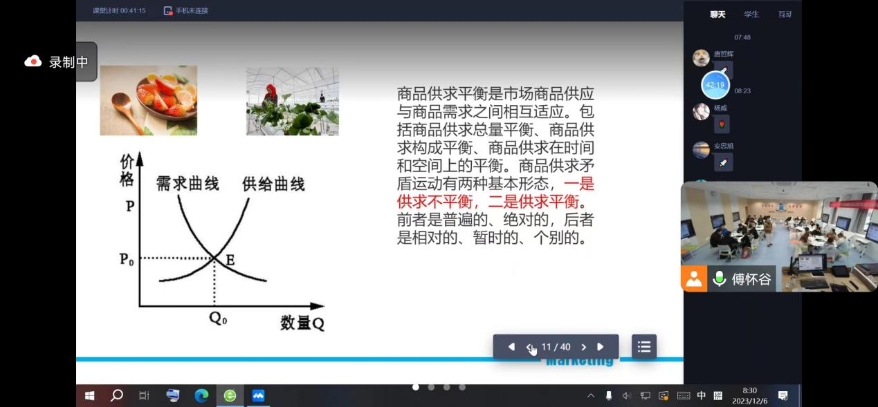 上海财经大学浙江学院工商管理系傅怀谷老师对移动互联时代下的营销定价模式进行深入浅出的讲解,采用案例探究、师问生答、生讲师评的互动方式,潜移默化地融入思政育人元素。同学们在云端课堂上互动踊跃,思维火花碰撞,呈现一幅东西部同步课堂、融合式协同教学的画面。青海西宁城市职业技术学院旅游商贸系主任何媚等教师参与了课程观摩及评课活动。