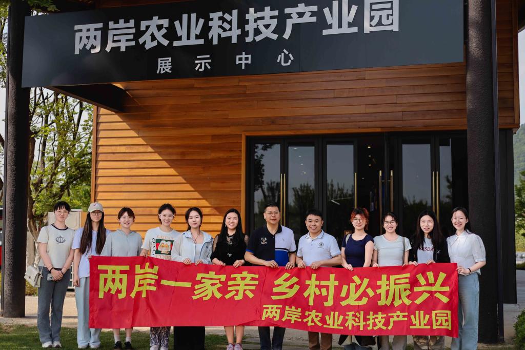 调研活动由现场参观和座谈交流两个环节组成。在现场参观环节,张园园为全体师生详细介绍了产业园智慧农业技术应用、两岸农业合作模式及产业融合发展实践等内容。