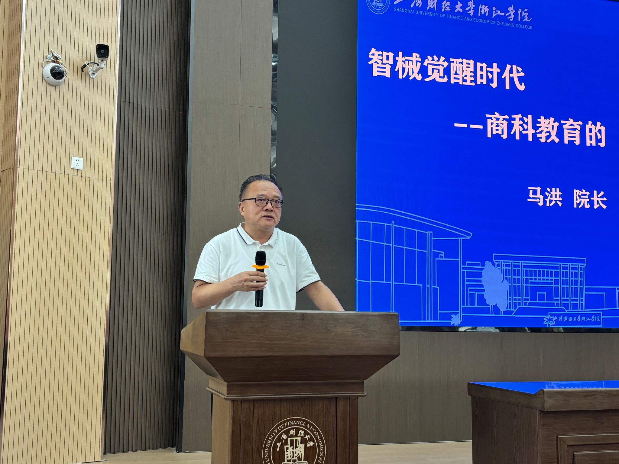 马洪以《智械觉醒时代,商科教育的“道”与“谋”》为题,指出学院依托上海财经大学百年商科底蕴与浙江经济生态,深耕金华商贸沃土,打造特色商科高地。面对 AI 对商科教育的变革,他强调AI是重塑生产要素的“有机体”,传统知识“折旧”加速下,商科教育需“双向跃迁”—— 既推进“技术赋能”,将AI融入课程育复合型人才,也注重 “人文铸魂”,强化学生批判性思维与伦理责任。他承诺学院将构建“智慧商科”生态,期待与家长携手,助孩子成长为兼具科技素养与人文情怀的商业领袖。