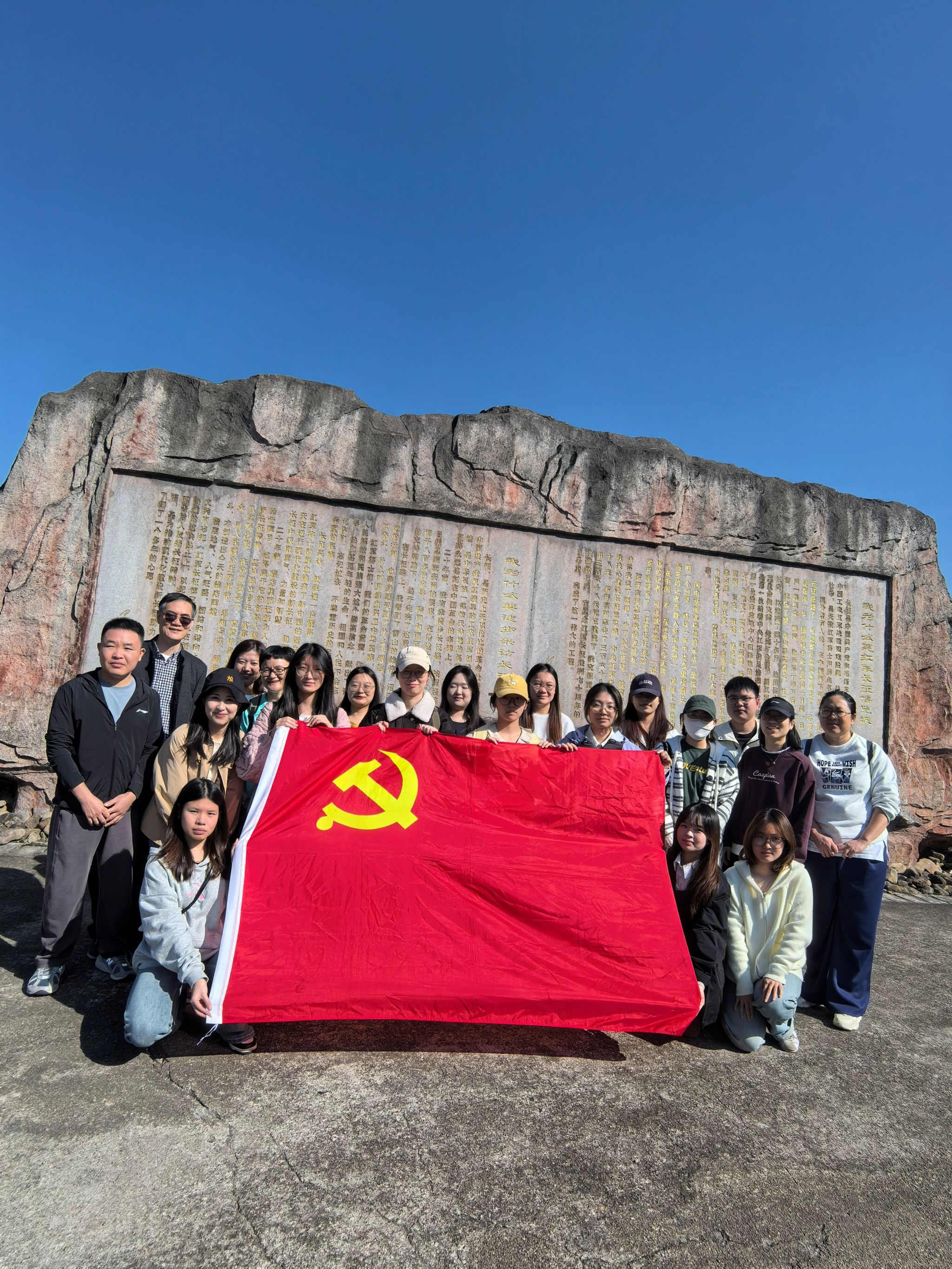 为深入学习贯彻党的二十届四中全会精神,传承红色基因,凝聚奋进力量,2025年11月16日,上海财经大学浙江学院工商管理系教工党支部组织党员教师、入党积极分子及学生党支部结对党员代表赴浙江省东阳市红军长征博览城开展“重走长征路·奋进新征程”主题党建活动。