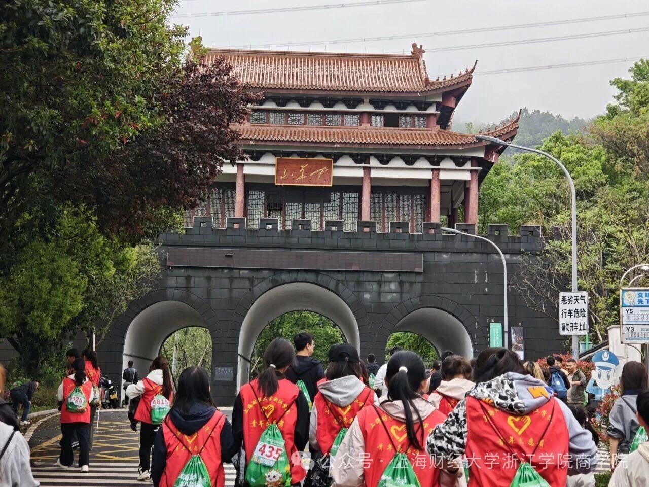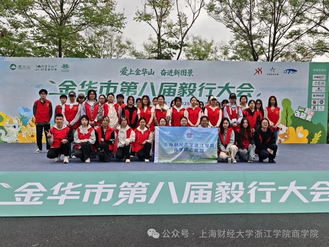 4月12日,2026年金华市第八届毅行大会在金华双龙风景旅游区正式鸣笛启行。为践行绿色健身、生态守护理念,上海财经大学浙江学院商学院积极组织55名青年志愿者化身“环保卫士”,全程参与毅行赛道环保志愿服务,以青春行动守护金华山生态美景,成为赛道上一道靓丽的青春风景线。