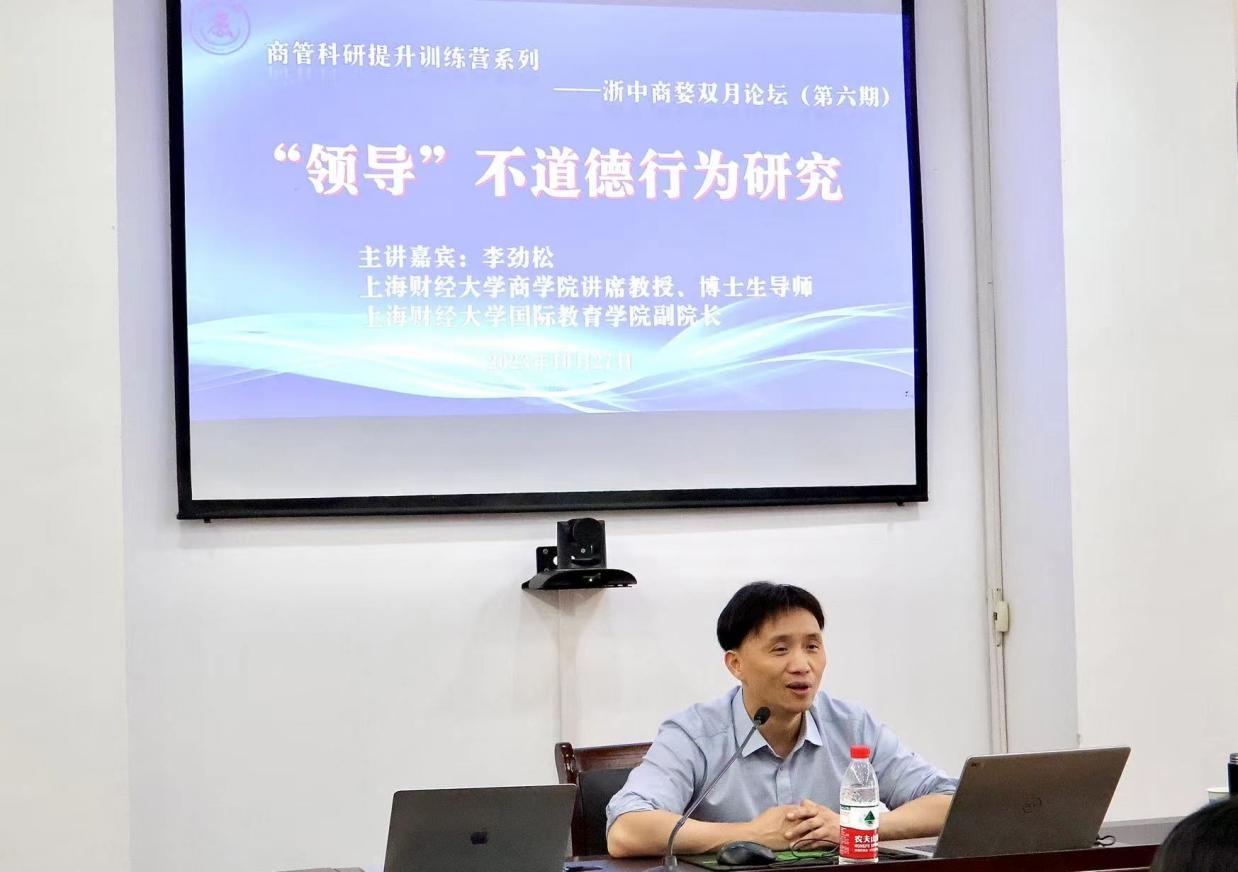 为不断提升师生科研能力水平,10月27日,工商管理系邀请上海财经大学商学院讲席教授、博士生导师,上海财经大学国际教育学院副院长李劲松老师为师生作《“领导”不道德行为研究》讲座,全系50余名师生参加本次讲座。
