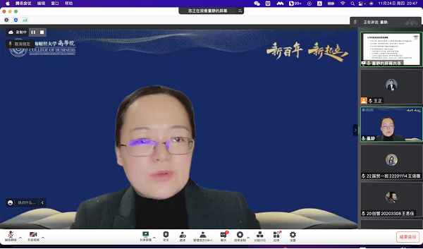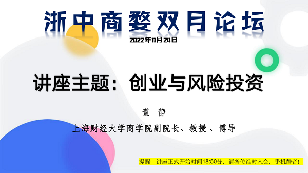 由上海财经大学浙江学院工商管理系举办的“浙中商婺双月论坛”分别与11月24日与11月25日举行,本次论坛采用线上、线下进行,此次论坛主讲嘉宾分别来自上海财经大学商学院副院长董静教授、浙江科技学院李俊教授。董静教授以“创业与风险投资”为主题,立足我国作为全球最有创业热情国家之一的现实背景,从为什么我们应该关注创业与风险投资、为什么应该研究创业与风险投资的问题入手层层深入,深入剖析了风险投资的投资逻辑、不同资本背景风投的投资策略、风险投资的运作过程、创业企业和风险投资的互动关系等内容。同时,董静教授就其自身的研究领域出发,提出了一系列可深入挖掘的研究主题。李俊教授以“创业教育一流课程与新形态教材建设”为主题,立足课程改革,以“创业管理一流建设课程”背景,来阐述应用型本科院校“创新创业一流课程”建设重要性,并从“理论、实践、案例”三个纬度深入讲解如何在课程教学中把“知识、能力、素质”更好传导给大学生,以及构建特色课程重点等方面,提出了一系列切实可行的具体措施。本届论坛座无虚席,近400名师生共同聆听了本次讲座。