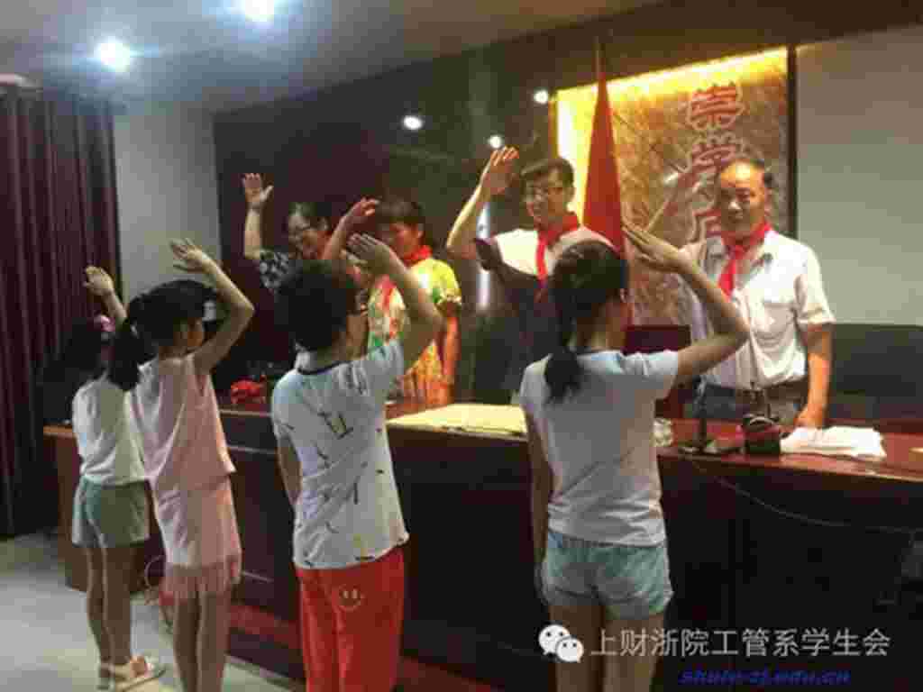 2016年7月14日上海财经大学浙江学院工商管理系的暑期志愿者们再次来到金店村,带着孩子们一起开展了“学习党,跟党走”的活动。