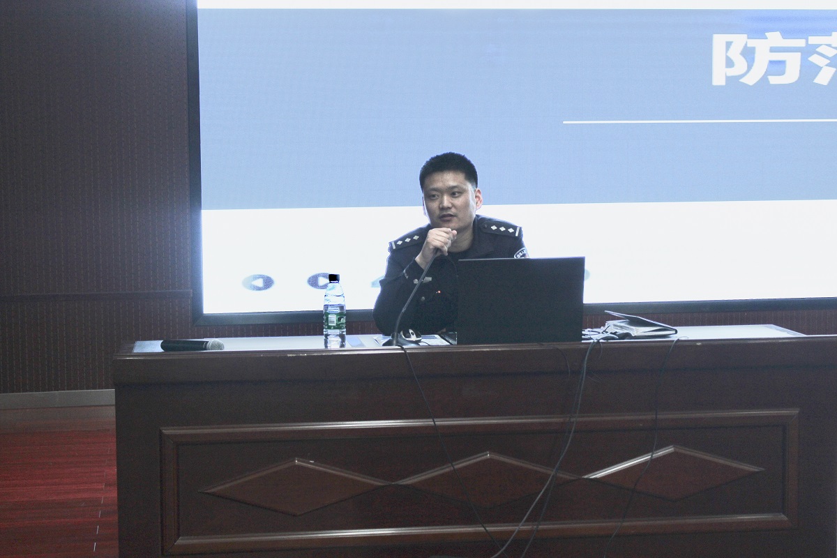 讲座中,王主任从一起电信网络诈骗案例开篇,提醒同学们在日常生活中不能大意。通过PPT、案例分析、现场讲解等形式,有针对性地向学生们介绍了三大诈骗类型,其中包括网络类、婚恋交友类、冒充类,对学生如何提高自身的法律意识、提升安全意识等进行了详细的分析讲解。洪所长通过结合一系列生动鲜活的案例,并联系实际以案释法提醒学生增强防诈骗的意识,切实维护自身的生命财产安全,极具针对性和实用性。