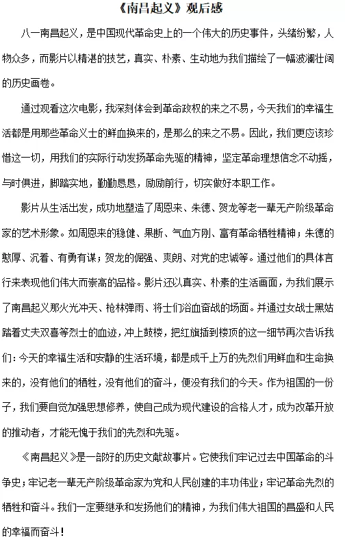 只听那一声枪鸣,黎明冲破了黑暗。武装反抗革命正式开始,跟随电影我们开始重新回顾那段峥嵘岁月。当我看到影片中革命志士们在领袖的正确领导和指挥下,奋勇杀敌时,我被先辈们的奋勇杀敌,舍生忘死的高涨精神所震撼。
