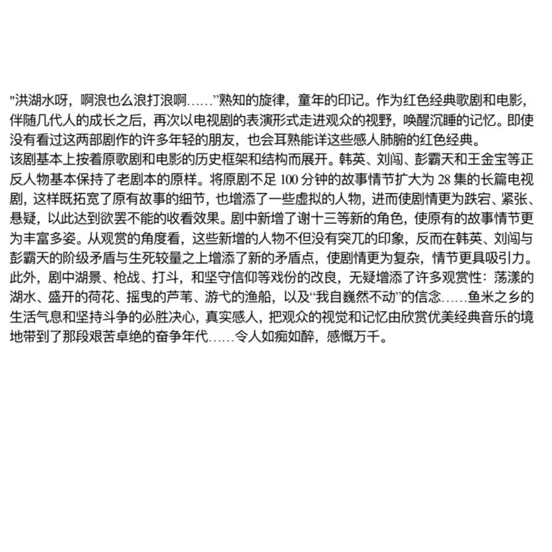 剧中慷慨赴死的人物造型与革命英雄主义的情节,以及精炼的台词让人陶醉其中,触景生情,引发深思——在富裕的生活中,在时尚的年代里,如何温故“典籍”,怎样缅怀革命先辈,从真正的意义上构建和谐的家园。