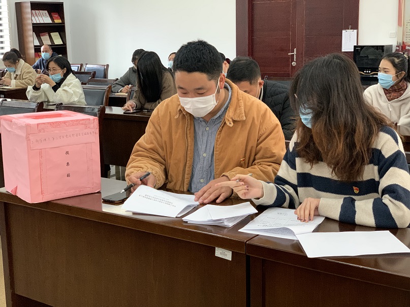 会上,大会全体党员表决通过了选举办法、候选人名单、监票人名单、计票人名单。之后,计票人领发选票。每位党员都慎重地投下了宝贵的一票。根据得票情况,张慧忠同志、方晓芬同志补选为党支部委员会委员。