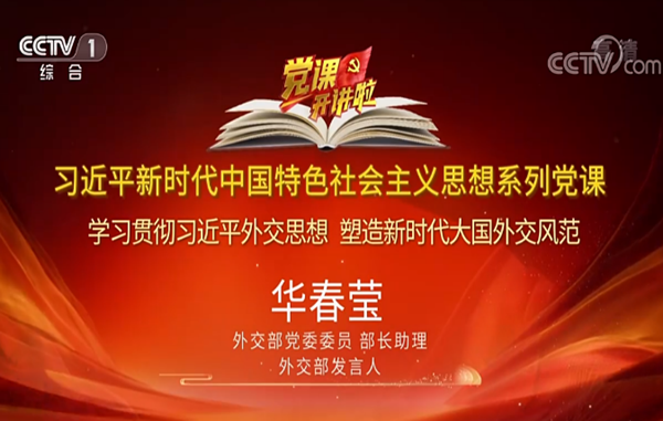 10月14日晚《党课开讲啦》邀请外交部党委委员、部长助理华春莹担任主讲人,在节目中她谈到,十八大以来,面对国际风云的变幻,中国外交从容应对,攻坚克难,有力地捍卫了国家的主权、安全、发展利益,同时为维护世界和平稳定、促进共同发展作出了重要贡献。这些非凡成就的取得,最关键的是因为我们有以习近平同志为核心的党中央的坚强领导,特别是以习近平总书记作为新时代中国特色大国外交总设计师的领航把舵以及习近平外交思想的科学指引。