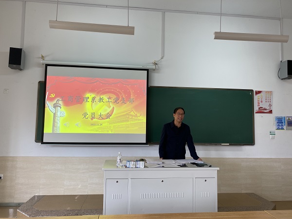 为了更好推进基层党建,发挥基层党支部战斗堡垒作用,我系教工党支部在收到上级学院党委同意系部召开党员大会补选党支部委员会委员批复后,于2022年11月24日顺利召开教工支部党员大会,补选党支部委员会委员,大会由工商管理系教工党支部组织委员江潇同志主持。