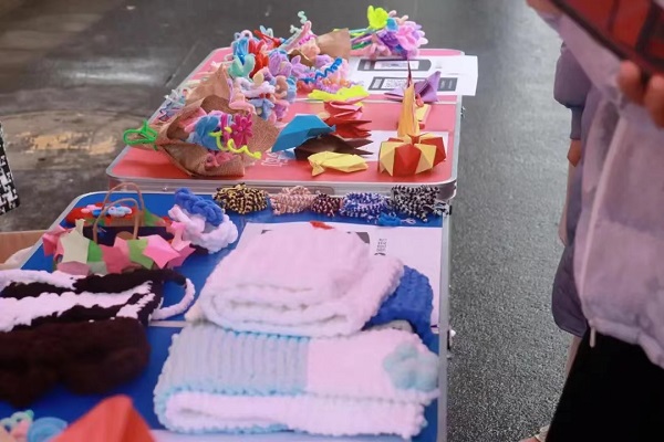为深入学习贯彻党的二十大精神,提高党支部党员的实践服务能力,切实将党的二十大精神落实到实际行动中,12月8日9:00-17:00,工商管理系第二学生党支部携手工商管理系团总支学生会青年实践部于学校主干道开展“编制汇繁星”爱心义卖活动,本次活动售卖的红色主题手工艺品由工商管理系第二学生党支部党员同志们制作,在先前的制作环节中共征集到党建摆件、花束、剪纸、折纸、针织等手工艺品200余件。
