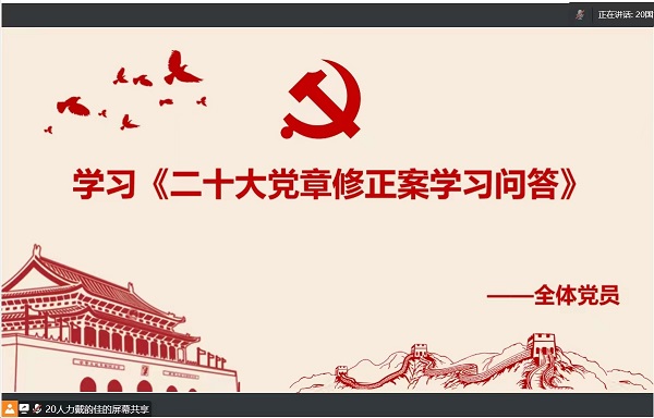 2022年12月16日12:00,工商管理系第二学生党支部通过钉钉会议的方式开展以“学习二十大 争创全年红”为主题的党日活动。本次党日活动由工商管理系第二学生党支部书记盛奥同志主持。本次党日活动应到党员81名,实到75名,请假6名。