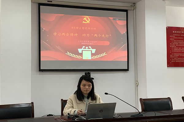 3月30日中午,工商管理系教工党支部以“学习两会精神,助力‘两个先行’”为主题于党员之家开展三月份主题党日活动。活动由教工党支部副书记方晓芬主持。