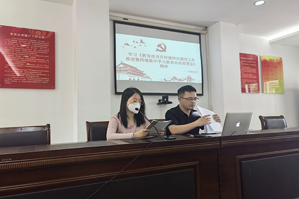 最后,支部宣传委员丁瑾组织大家就《教育部召开师德师风建设工作推进暨师德集中学习教育启动部署会》精神进行学习,并结合学院师德师风问题整治工作要求,持续深入地开展师德主题教育环节活动,最后江潇同志做了重点发言。他表明教师应始终以“传道、授业、奉献”为己任,视“正己、爱生、敬业”为天职,鼓励大家按照教师职业道德标准来行为世范,树立良好教师形象,对学生以爱作为教育的前提,以与时俱进的眼光不断上进求索,保持作风正派,廉洁从教。
