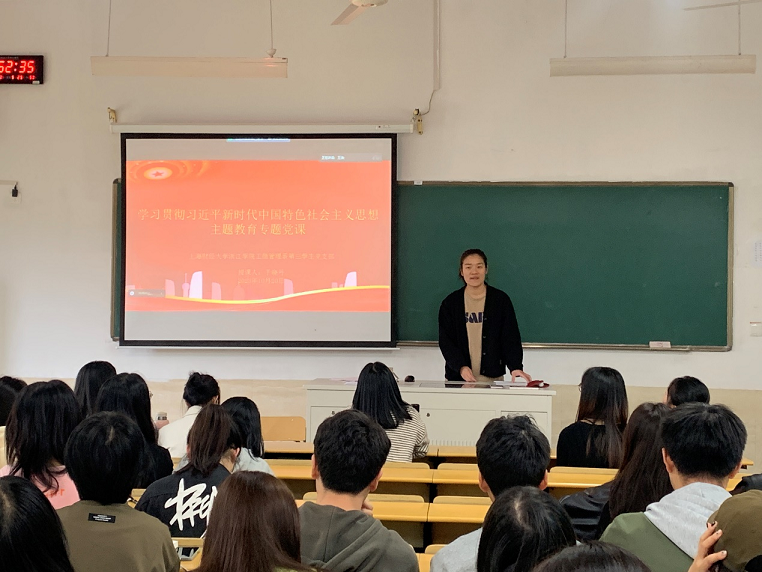 为深入学习贯彻习近平新时代中国特色社会主义思想,推动主题教育走深走实,10月20日中午12:30,工商管理系第三学生党支部在7-115开展了主题教育专题党课。本次党课以“做一名政治过硬能力全面的学生党员”为题,由支部书记于晓丹主讲。