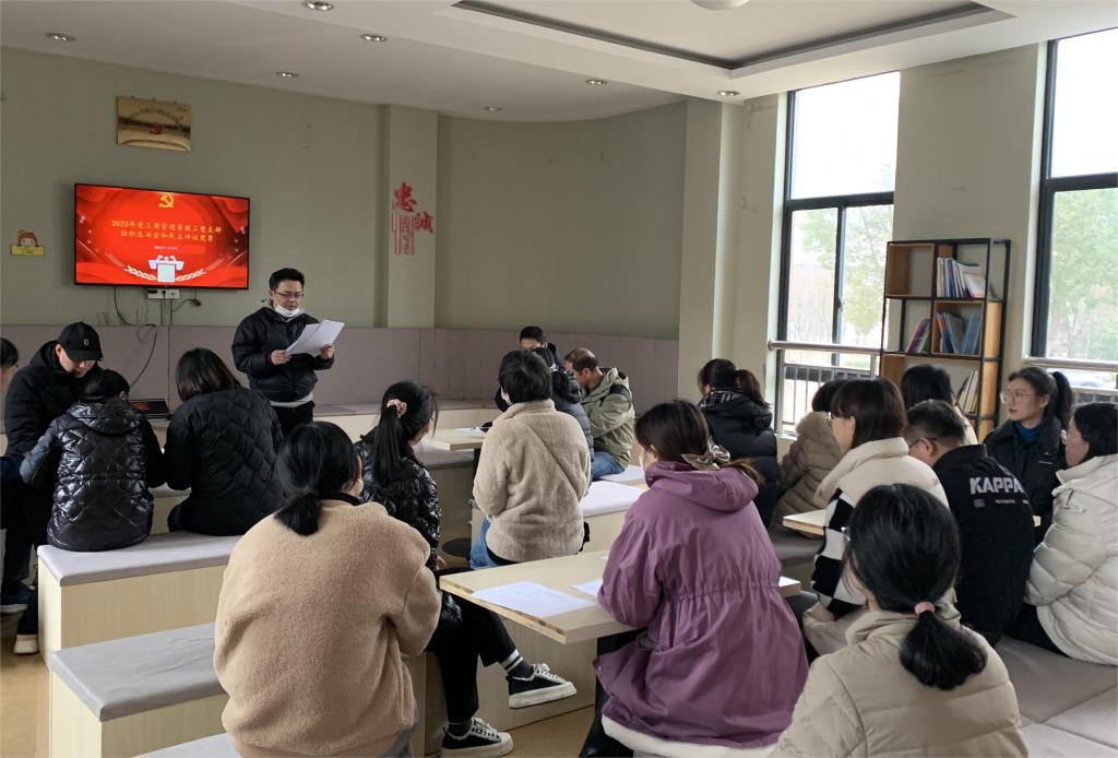 1月15日,工商系教工党支部于29幢创业角召开2023年度组织生活会,暨党员民主评议大会。会议由教工党支部组织委员江潇主持,全体教工党员参会。