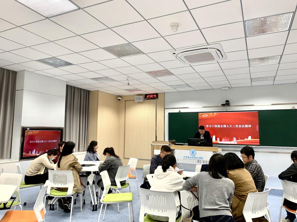 为深入学习贯彻党的二十大精神和习近平总书记重要讲话精神,深入学习全国两会精神,进一步学深悟透习近平新时代中国特色社会主义思想,将主题教育走深走实,2024年3月29日中午,工商系教工党支部以“贯彻落实全国两会精神 推进教育高质量发展”为主题于6—106开展三月主题党日活动。会议由教工支部书记赵竞竞主持,全体教工党员参加。